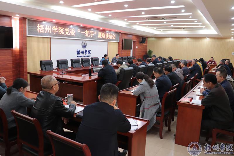 为进一步推动全面从严治党“两个责任”贯通落实,开展好“抓书记、书记抓”工作,12月13日下午,学校党委在明理楼第一会议室召开二级单位、部门“一把手”廉政谈话会。学校党委书记韦仕珍以《提高政治素质,做一名合格的“一把手”》为题作讲话,学校党委常委、纪委书记梁业华主持会议。
