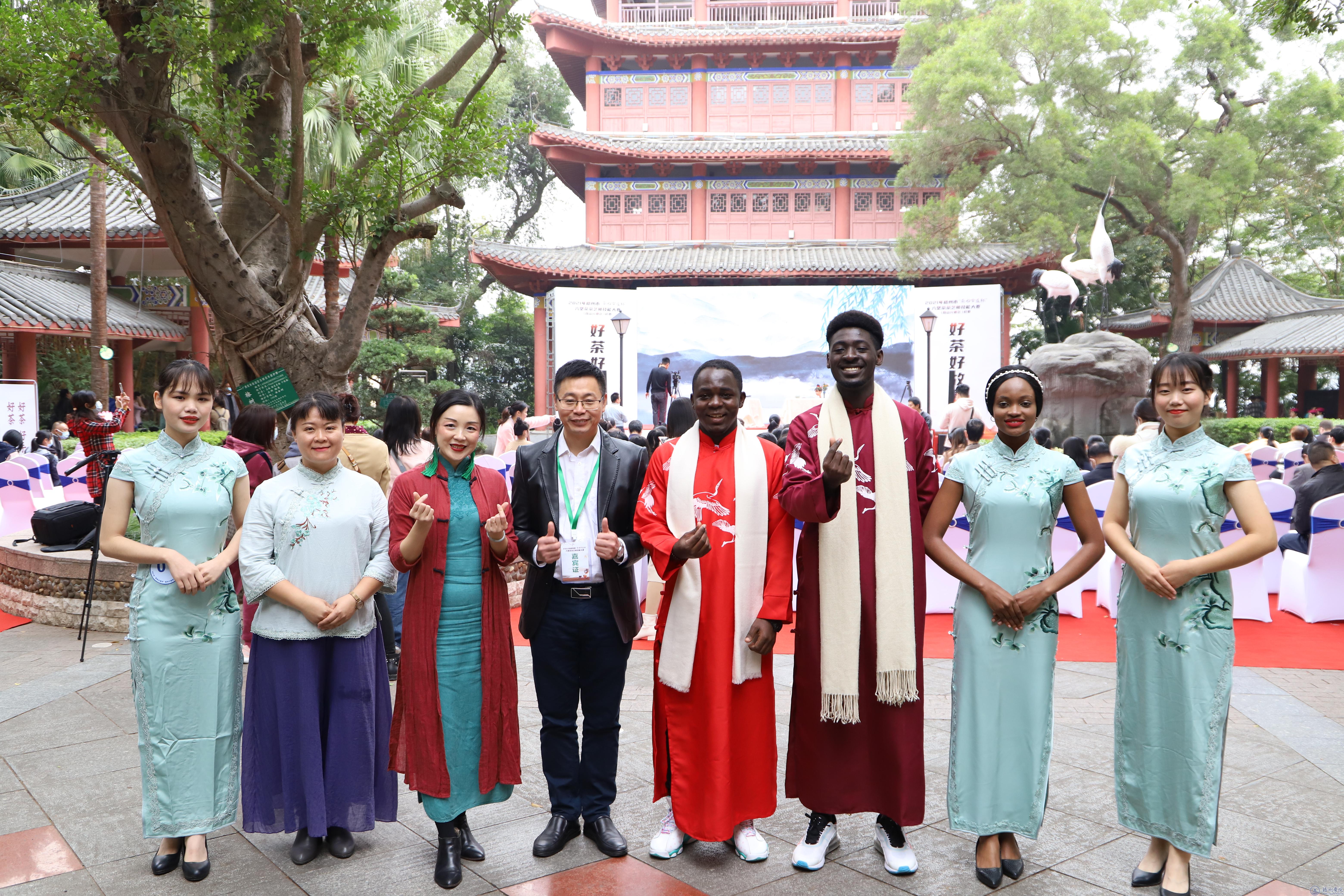 11月19日,广西茶艺职业技能大赛(梧州赛区)初赛暨2021年“茶船古道杯”梧州市茶艺职业技能大赛正式拉开帷幕,大赛旨在弘扬梧州六堡茶文化。我校组建了一支由中外学生组成的团队“六堡茶文化国际传播队”参加了这次比赛。学校副校长宾月景现场指导参赛工作。