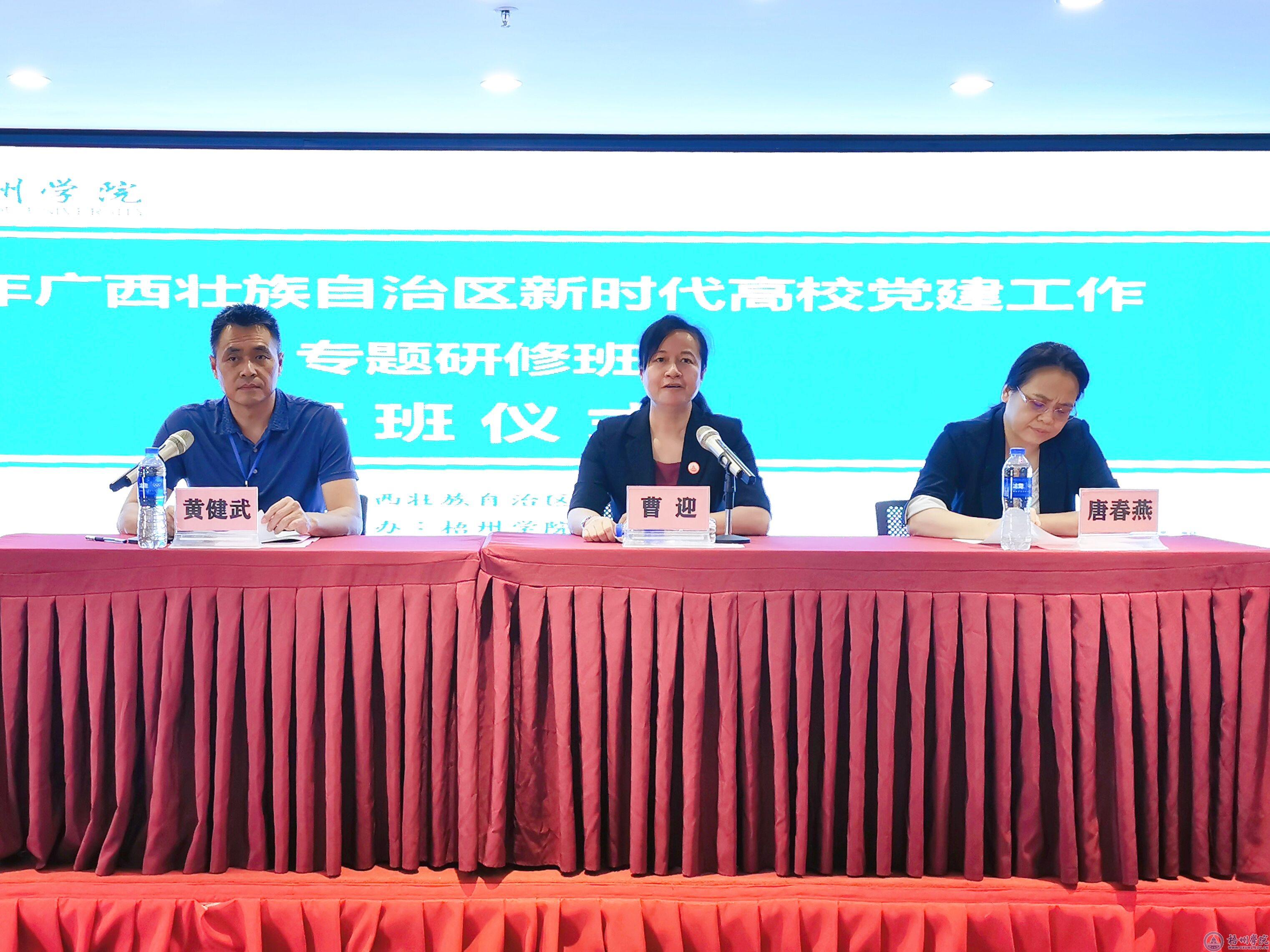 近日,由自治区教育厅、自治区党委教育工委主办,梧州学院党委党校承办的“新时代高校党建工作专题研修班”在梧州成功举办,全区83所高校党委组织部门主要负责人参加了研修培训。梧州学院党委副书记曹迎、自治区党委教育工委组织部部长唐春燕出席开班仪式。