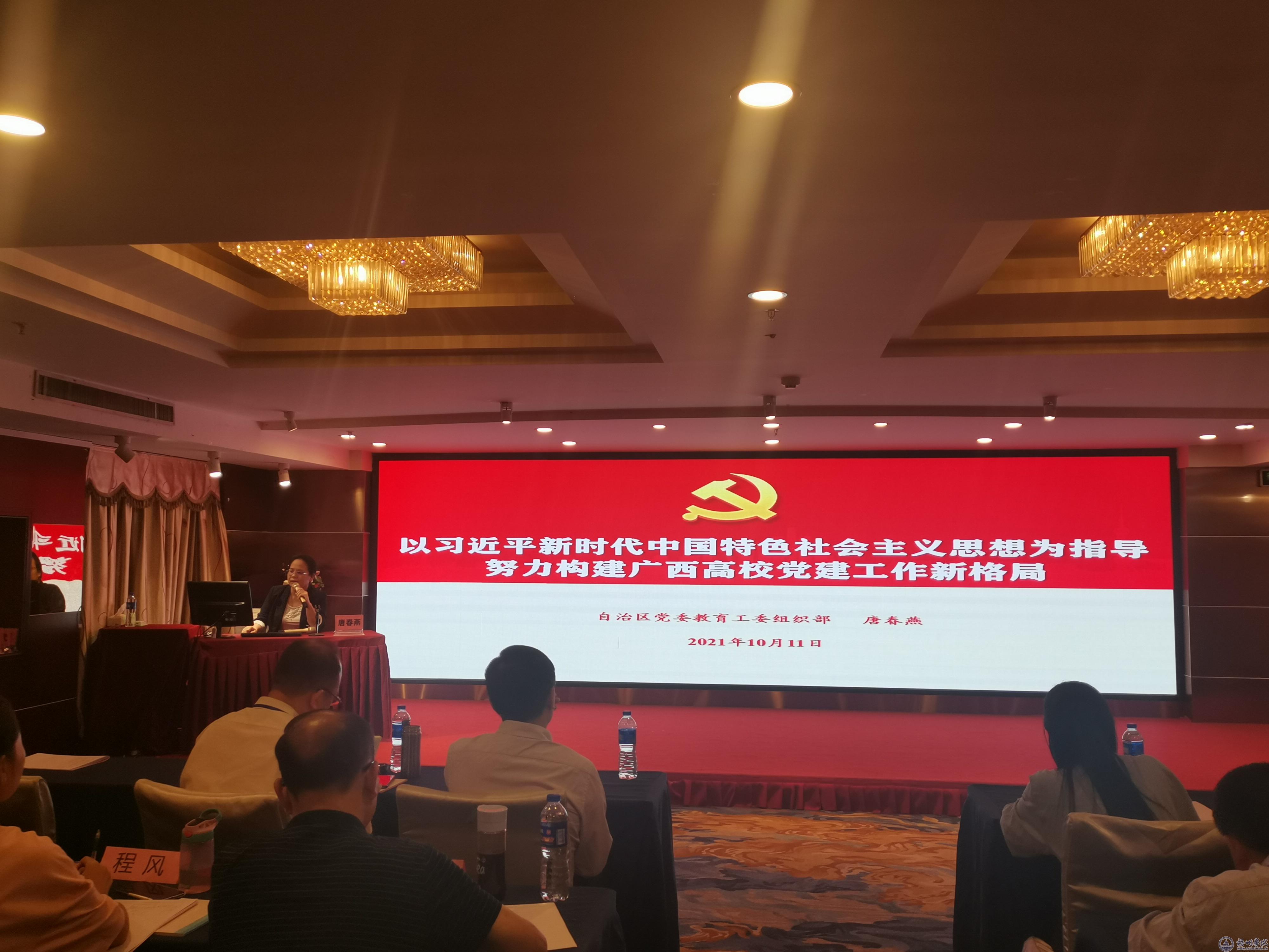 自治区党委教育工委组织部部长唐春燕作《以习近平新时代中国特色社会主义思想为指导 努力构建广西高校党建工作新格局》专题讲座