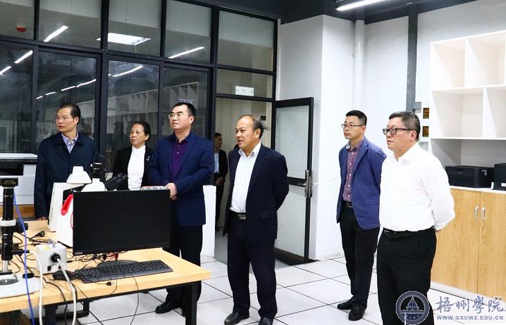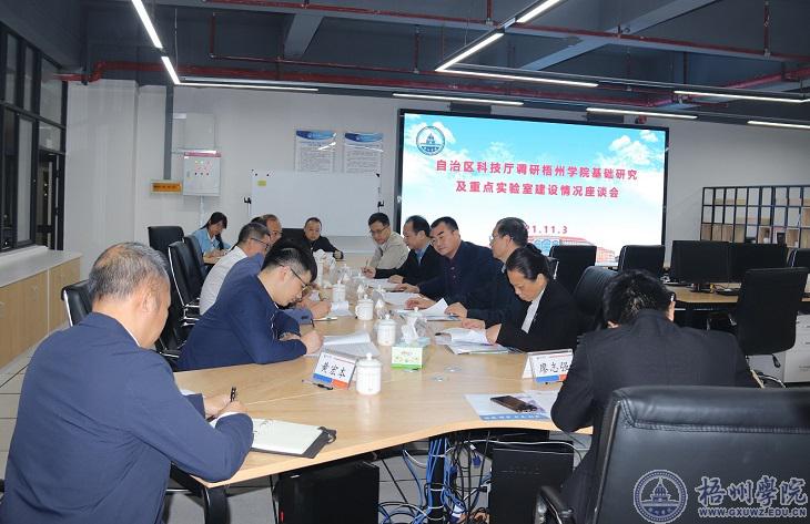 梧州市二级巡视员谢英,梧州市科技局副局长祝楚良以及成果科负责同志,自治区科技厅相关处室负责人,我校科研处、电子与信息工程学院、大数据与软件工程学院相关负责人等参加了调研活动。