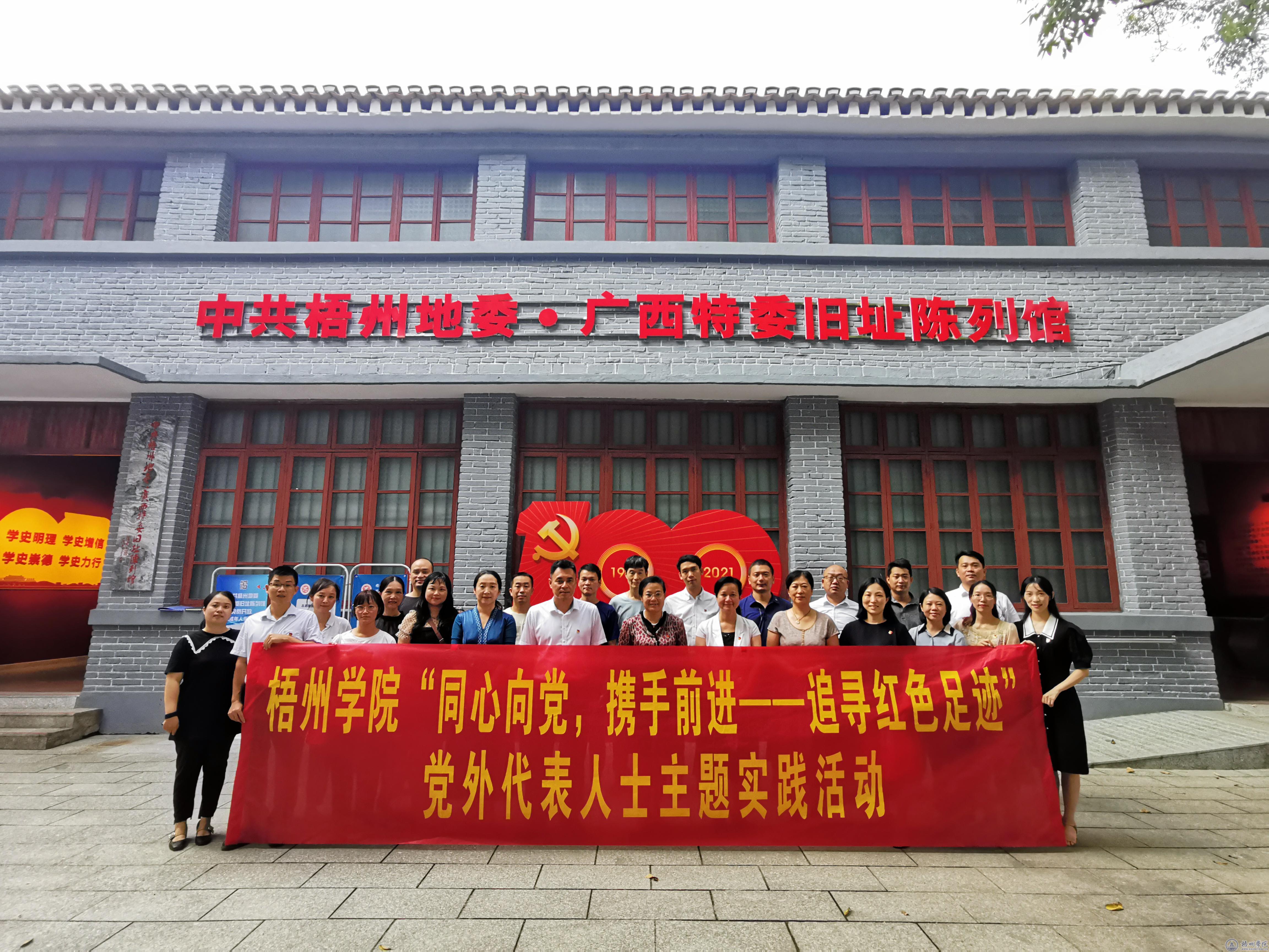 为庆祝中华人民共和国成立72周年,结合党史学习教育,9月30日,校党委统战部组织各民主党派、无党派人士和党外知识分子代表及统战干部二十多人,赴梧州市红色教育基地大同酒店旧址、中共梧州地委·广西特委旧址陈列馆开展主题实践活动。校党委书记韦仕珍、校党委副书记曹迎参加了有关活动。