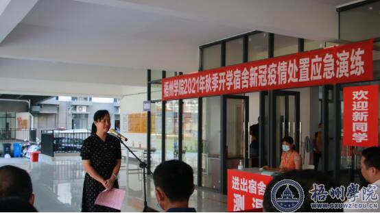 9月7日下午,学校2021年秋季开学宿舍新冠疫情处置应急演练在北校区学生公寓7号楼举行,校党委副书记曹迎出席演练现场并作讲话,相关职能部门负责人、各二级学院分管学生工作的负责人、全体辅导员,宿舍管理人员、班主任、宿舍协管员和学生代表参加演练。