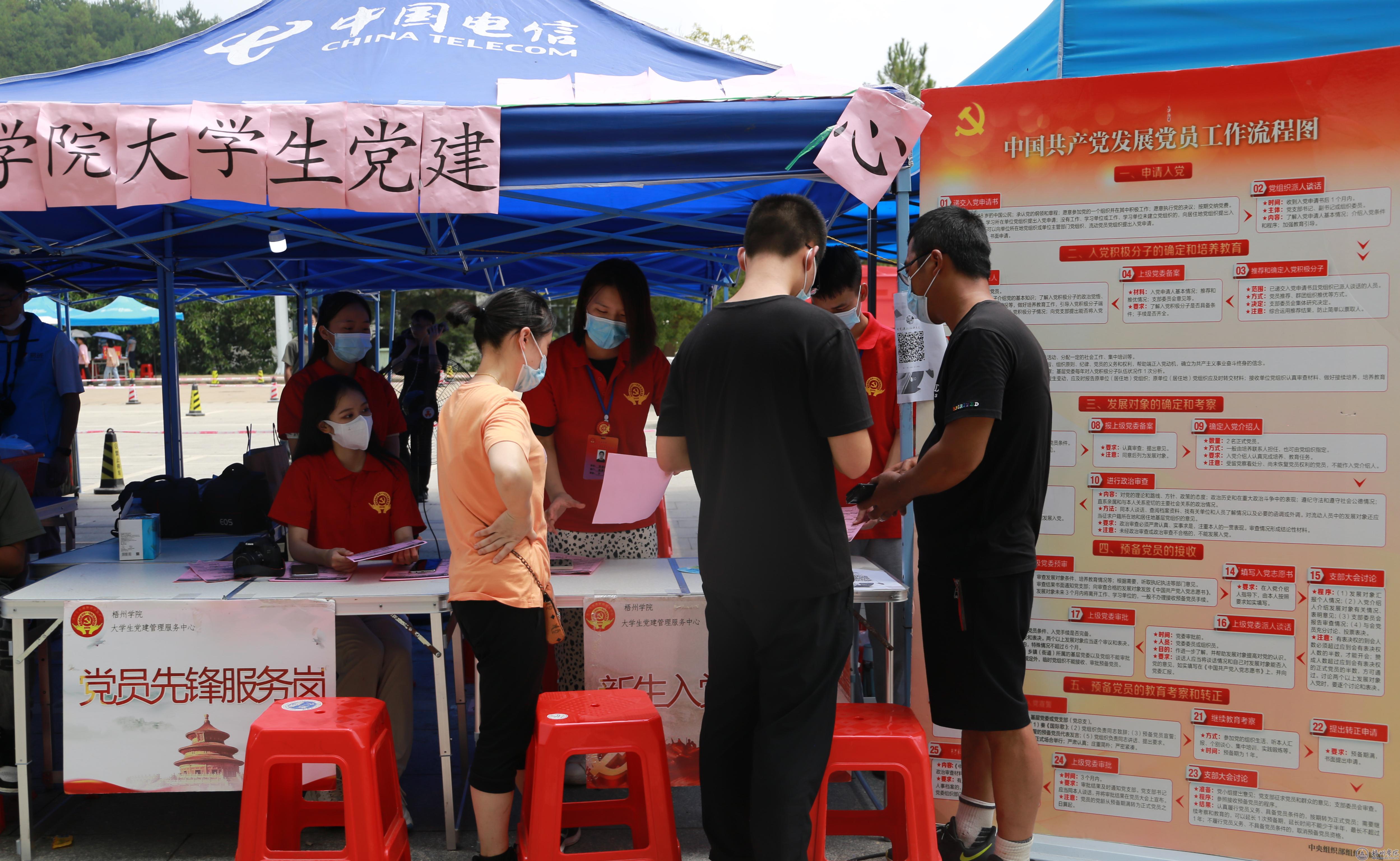 学校大学生党建管理与服务中心党员在向新生讲解入党流程