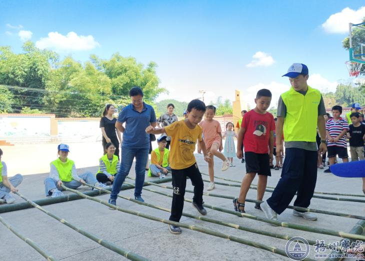 韦仕珍书记与志愿者、小朋友一起跳竹竿舞