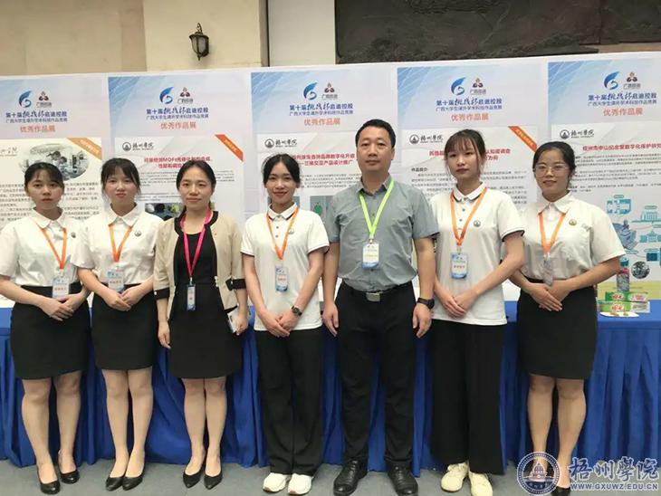 本次竞赛,我校共报送25件作品至区赛,其中,有4个项目于5月22日至23日到南宁参加终审决赛,均荣获一等奖。分别是李石雄老师指导的《羟基修饰MOFs光催化剂的合成、性能和调控基理研究》项目,谢友中老师指导的《民族品牌”复活”的市场认知度调查——以梧州田七牙膏为例》项目,李松老师、李德华老师、陈文老师指导的《梧州珠宝首饰品牌数字艺术化升级——三维交互产品设计与推广》项目,于洋老师、姜丽老师指导的《梧州市中山纪念堂数字化保护研究》项目。