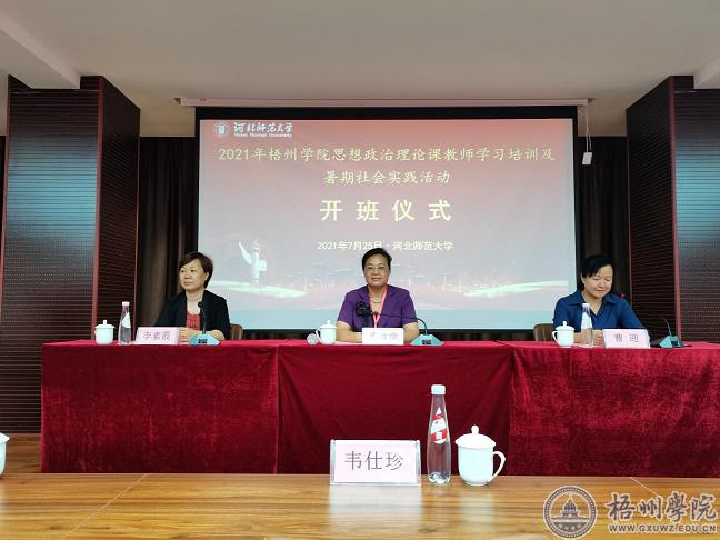7月25日举行了开班仪式,学校党委副书记曹迎主持开班式。开班式上,河北师范大学马克思主义学院执行院长李素霞教授就河北师范大学马克思主义学院历史沿革、学科建设、专业发展、平台打造等方面作了交流发言。韦仕珍书记对参训学员提出要求:要提高政治站位,认识培训的重要意义;要注重学习方法,提高学习效果;要遵守学习纪律,做好防疫措施;要苦练内功,提高专业素质。