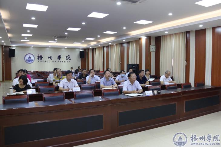我校在明理楼七楼视频会议室设立分会场。校党委书记韦仕珍在河池参加会议,副校长邱房贵,各相关职能部门、二级学院负责人在分会场参加会议。