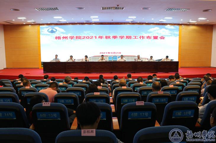 为贯彻落实教育部、教育厅关于今年工作的部署,进一步明确学校今年的工作思路和部署,统一思想,做好常态化疫情防控工作,抓好各项工作落实,推动学校高质量发展,9月2日下午,学校在明理楼学术报告厅召开2021年秋季学期工作布置会,全面部署秋季新学期的各项工作。学校领导韦仕珍、杨奔、曹迎、玉振明、邱房贵、梁业华、麻新纯、宾月景出席会议。会议由校党委书记韦仕珍主持。学校全体中层干部参加了会议。