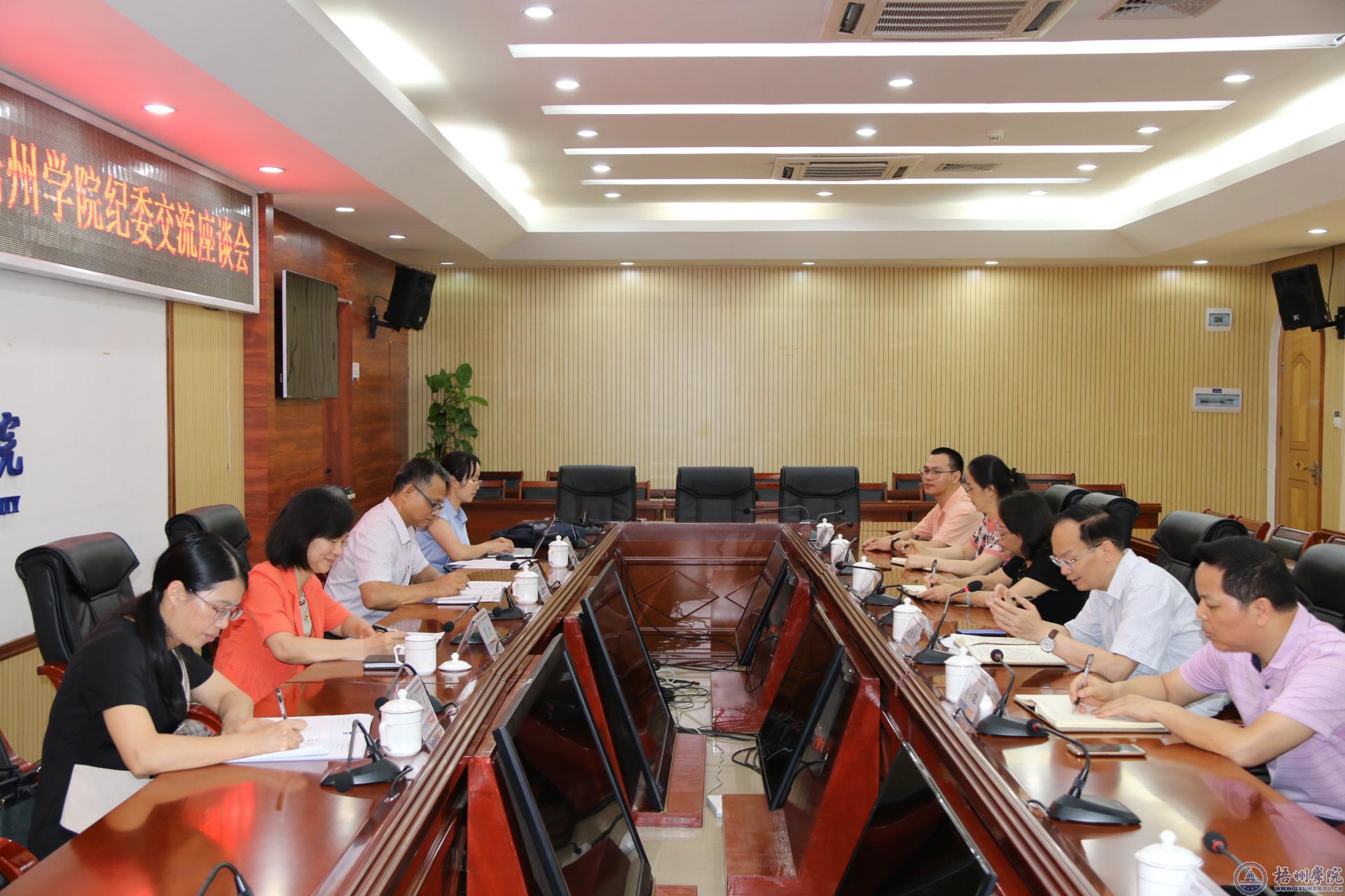 7月2日下午,广西职业师范学院纪委书记苏洁率队到我校考察交流纪检监察工作,我校党委常委、纪委书记梁业华主持召开了座谈会。