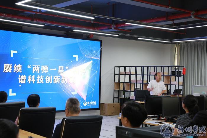 6月25日下午,副校长玉振明以《赓续“两弹一星”精神,谱科技创新新篇》为题,为电子与信息工程学院、大数据与软件工程学院、后勤基建处党员干部、学生党员代表作党史学习教育宣讲。