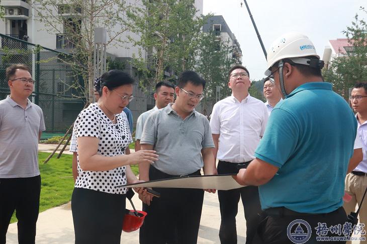 在学校北校区项目建设现场,卢新华听取了相关负责人对北校区的介绍,尤其是新食堂、实验实训楼等项目建设进展情况的汇报。卢新华对学校北校区建设进展表示肯定,并提出土地征收和充分利用坡地等建议。