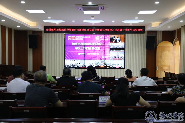 我校在明理楼七楼会议室设视频分会场,学校党委副书记曹迎、党委教师工作部、人事处、教务处负责人,二级学院党政主要负责人参加会议。