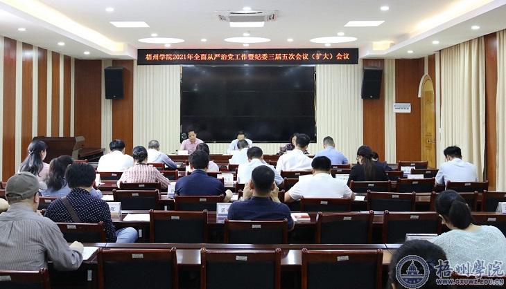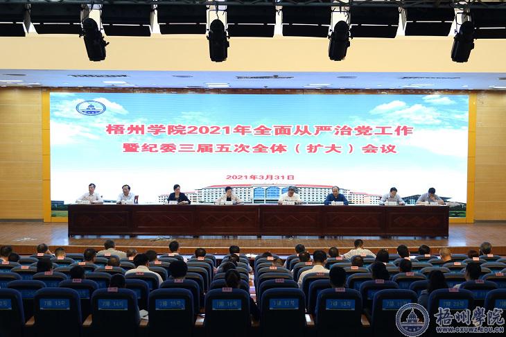 3月31日上午,学校召开2021年全面从严治党工作暨纪委三届五次全体(扩大)会议。全体校领导出席会议。会议由学校党委常委、纪委书记梁业华主持。