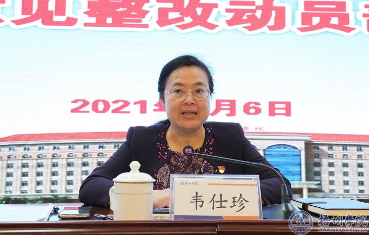 韦仕珍强调,巡视整改工作时间紧、任务重,务必要以严的要求、实的作风、真的担当的工作态度,以抓铁有痕、踏石留印的工作作风,以饱满精神、斗志昂扬的工作状态,坚决完成整改工作各项任务,为建设特色鲜明的应用型高水平大学营造更好的政治生态和发展环境,向自治区党委和全校师生交上一份满意的答卷,以优异成绩迎建党100周年。
