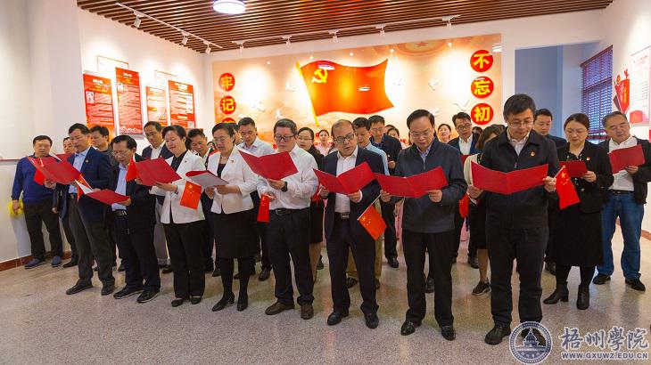 在广西革命老区第一村平浪村,全体中心组成员参观了平浪村革命老区文化馆,齐诵诗歌《感党恩跟党走》,齐唱《不忘初心》《没有共产党就没有新中国》。在旋律的起伏和歌词的传唱中,全体人员的心灵受到振奋,进一步激发了对党的感恩之情、热爱之情。