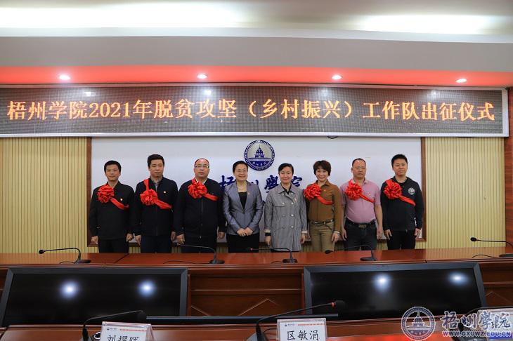 4月26日上午,学校在明理楼八楼第一会议室举行2021年脱贫攻坚(乡村振兴)工作队出征仪式。学校党委书记韦仕珍,党委副书记曹迎,党委部门主要负责人、本次派出第一书记的单位(部门)负责人以及新选派的6名驻村第一书记参加会议。会议由曹迎副书记主持。