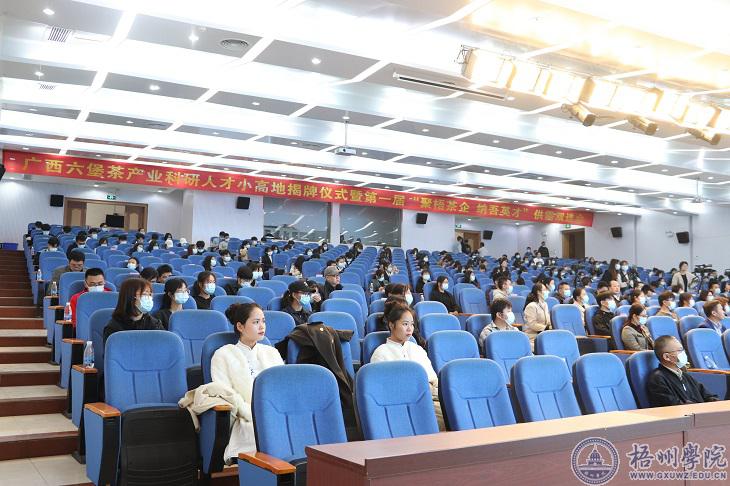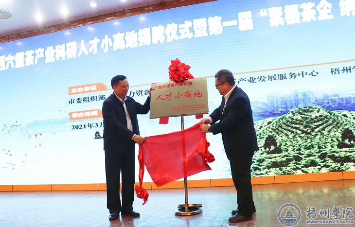 为进一步加强广西六堡茶产业科研人才小高地建设,搭建茶学等相关专业应届毕业生与茶企双向选择桥梁,充分发挥人才科技支撑作用,3月24日上午,广西六堡茶产业科研人才小高地揭牌仪式曁第一届“聚梧院企 纳吾英才”供需双选会分别在我校学术报告厅、体育馆举行。梧州市委副书记蒋海东,校长杨奔,校党委副书记曹迎,副校长宾月景,梧州市相关部门负责人出席活动。