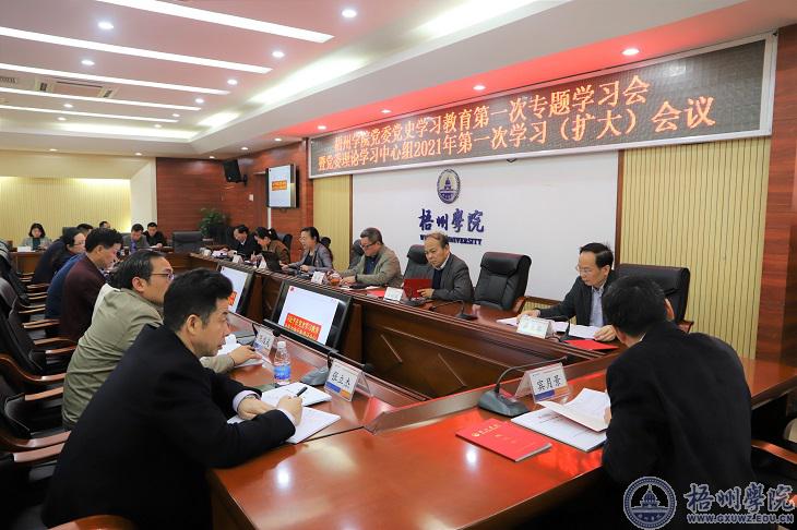 3月26日上午,我校在明理楼八楼第一会议室召开党委党史学习教育第一次专题学习暨党委理论学习中心组2021年第一次学习(扩大)会议。学校党委书记韦仕珍主持会议,学校领导杨奔、曹迎、玉振明、邱房贵、梁业华、麻新纯、宾月景和其他中心组成员参加集中学习,各职能部门、教辅单位、群团组织主要负责人,各二级学院党政主要领导列席会议。