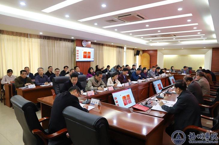 学校纪委书记梁业华结合学习梧州市委十三届十次全体(扩大)会议精神,谈了学校如何更好地服务地方经济和当前存在问题,提出加强顶层设计,构建战略合作关系、发挥双方的资金和智慧优势,加强产学研和创新成果转化、引进高端人才等意见。