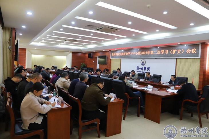 3月26日上午,我校在明理楼八楼第一会议室召开学校党委理论学习中心组2021年第二次学习(扩大)会议,专题学习鹿心社、蓝天立在省级领导干部和厅级主要负责同志专题培训班上的讲话精神。学校领导韦仕珍、杨奔、曹迎、玉振明、邱房贵、梁业华、麻新纯、宾月景和其他中心组成员,各职能部门、教辅单位、群团组织主要负责人,各二级学院党政主要领导参加会议。会议由学校党委书记韦仕珍主持。 会上,校长杨奔传达了自治区党委书记鹿心社、自治区主席蓝天立在省级领导干部和厅级主要负责同志专题培训班上的讲话精神,就如何贯彻落实好讲话精神提出要求。他强调,一是要迅速组织传达学习鹿心社书记的讲话精神,切实增强加快发展的使命感责任感,切实把学习成果转化为加快推进学校高质量发展的强大动力和实际成效。二是要坚持新发展理念引领抓落实,推动学校高质量发展。三是要坚持以更加扎实的作风抓落实,推动学校高质量发展。结合开展党史学习教育和学校的“三风”建设年工作,修好党史这门必修课,与时俱进提升能力,发扬孺子牛、拓荒牛、老黄牛精神,深入落实“解放思想、改革创新、扩大开放、担当实干”工作方针,躬身践行“担当为要、实干为本、发展为重、奋斗为荣”理念,保持奋发有为的精气神,出实招、使实劲、求实效,奋力推动各项目标任务落地落实。