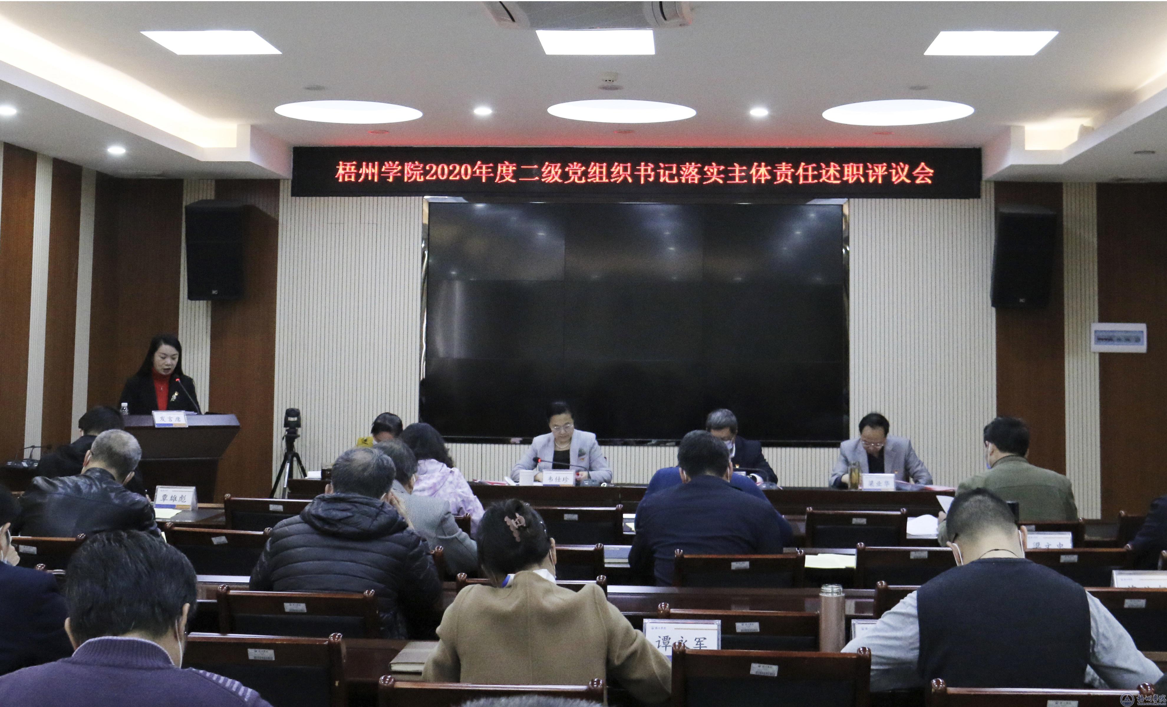 会上,我校12位二级党组织书记(主持工作副书记)对2020年度抓好基层党建、意识形态、党风廉政建设方面的工作进行现场述职。