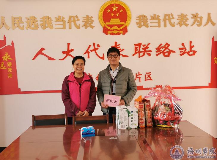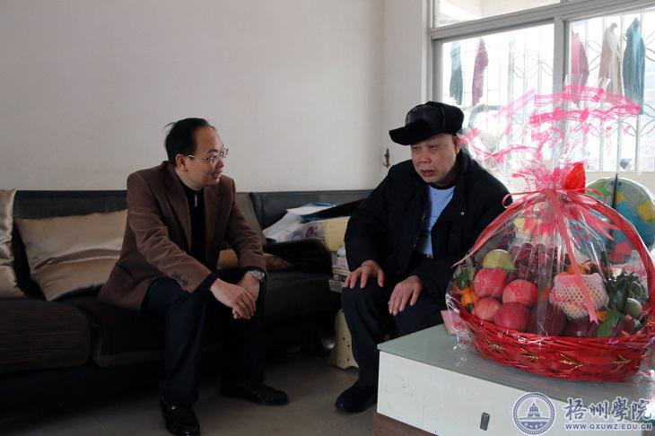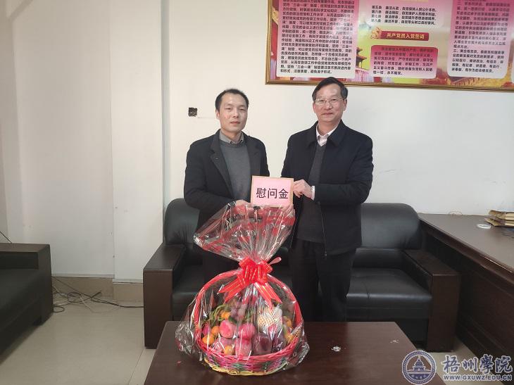 校纪委梁业华书记慰问原广西大学梧州分校总务处副处长吴鉴留 (何泽坚 摄)