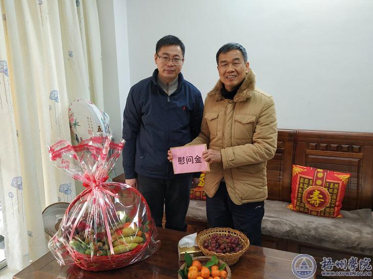 宾月景副校长慰问退休老教师曾福军(温海林 摄)
