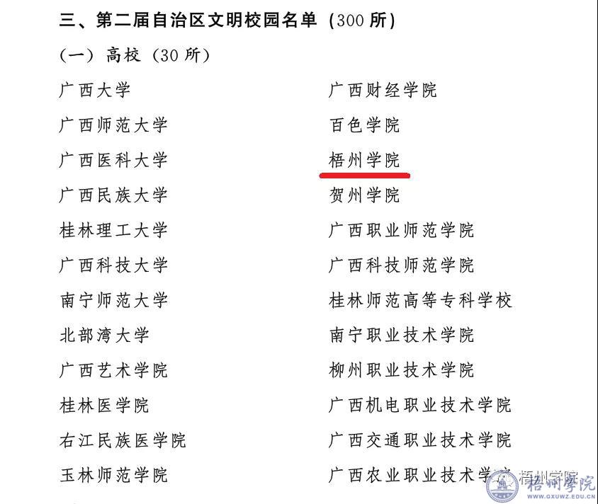 2020年,是收获硕果的一年;2021年,是开启新篇章的一年!在2020年,我们博物馆AAA景区揭牌、“萌狮行动”获奖、获得“自治区文明校园”称号……一件件梧院大事丰富了我们非凡的2020年!回首过去,我们思绪纷飞,感慨万千,在经过网络投票和学校各单位及部门的投票后,梧院十大新闻揭晓! 让我们一起来盘点2020年梧院的大事吧!(以下十大新闻按时间顺序排列) NO.1 我校马克思主义学院教师党支部入选教育部第二批“全国党建工作样板支部”。教育部办公厅公布了第二批全国党建工作示范高校、标杆院系、样板支部培育创建单位名单。经学校党委组织申报、自治区教育工委遴选推荐、教育部党的建设和全面从严治党工作领导小组成员单位集中审议、结果公示,我校马克思主义学院教师党支部入选“全国党建工作样板支部”,这是我校创建“国字号”党建品牌的重大突破。(1月10日官网报道) 教思政厅函[2019]18号教育部办公厅关于公布第二批全国党建工作示范高校、标杆院系、样板支部培育创建单位名单的通知 NO.2 我校6个专业获国家级、省级一流本科专业建设点。经各高校网上申报、高校主管部门审核,教育部高等学校教学指导委员会评议、投票,认定了4054个国家级一流本科专业建设点和6210个省级一流本科专业建设点。我校电子信息工程获国家级一流本科专业建设点,国际经济与贸易、机械设计制造及其自动化、软件工程、制药工程、产品设计5个专业入选省级一流本科专业建设点。(1月12日官网报道) 6个专业获国家级、省级一流本科专业建设点 疫情防控捐赠,梧院校友在行动。新冠肺炎疫情暴发以来,学校的疫情防控工作牵动着广大校友和教职工的心,积极响应学校教育发展基金会的疫情防控捐赠倡议,克服各种困难,想方设法为母校捐赠紧缺疫情防控物资,助力母校的疫情防控工作,为打嬴疫情防控阻击战做出积极贡献。经统计,学校教育发展基金会募集疫情防控专项捐赠资金7笔,共计人民币20799元,疫情防控物资49批,价值人民币约508220元。(2月25日、2月28日、3月1日、3月9日、3月18日、3月28日官网报道) NO.4 我校首次获批成为第六批广西博士后创新实践基地单位。6月16日,自治区人社厅正式发文,将梧州学院列为第六批广西博士后创新实践基地单位。 获批博士后创新实践基地是学校学科建设和科研工作的又一重大成果,对于实现学校党代会提出的“九突破”具有重大的意义,将加快提升学校的科研创新能力,推动科研工作再上新台阶。(6月24日官网报道) NO.5 北校区建设项目宿舍楼全部封顶。8月13日,梧州学院北校区建设项目4栋宿舍楼全部封顶!自6月19日首栋宿舍楼封顶以后,经历了55天,最终实现全部封顶。工地现场战鼓齐擂,冲锋号角嘹亮,各方参建主体全面冲刺北校区项目建设一期工程按时交付目标,北校区建设项目创造了全新的梧院速度。( 8月15日官网报道)