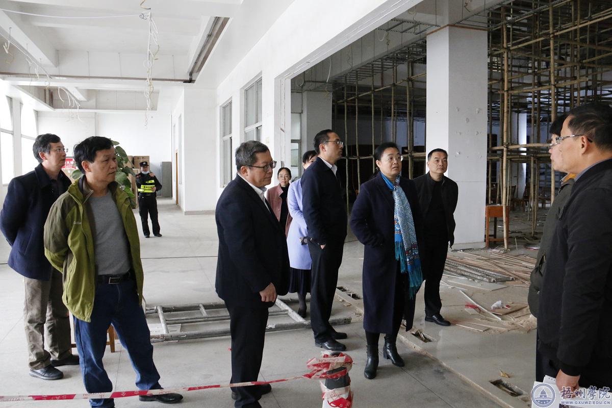 学校领导检查图书馆一楼改建工程