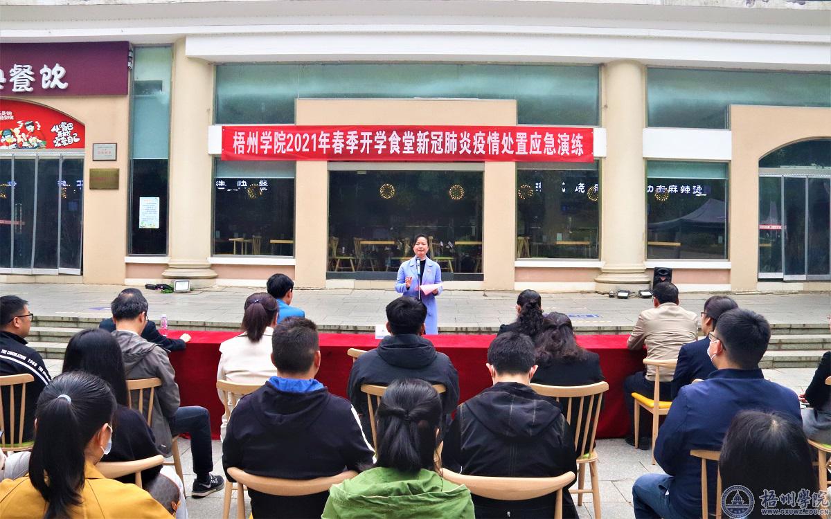 为切实做好我校2021年春季学期的疫情防控工作,确保师生员工的身体健康,确保教育教学工作顺利开展,3月10日下午,我校在第三食堂举行2021年春季学期开学学生食堂疫情处置突发事件应急演练。学校党委副书记曹迎观看演练并作讲话。 本次演练分为“学生进入食堂门口测温时体温异常”、“食堂内就餐学生出现体温异常”两个场景,采取现场演练和情景模拟相结合的方式,实战演练学生进入食堂核验体温检测流程和食堂内出现体温异常学生的应急处理。