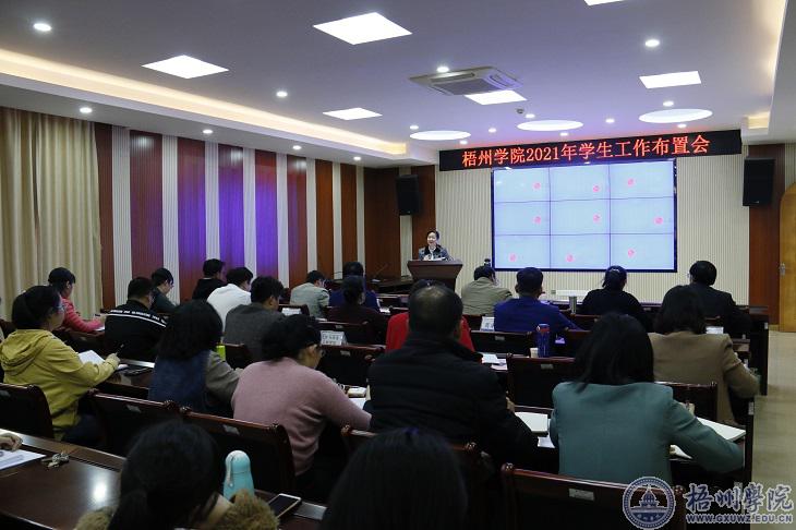3月11日下午,我校在明理楼七楼视频会议室召开2021年学生工作布置会。学校党委副书记曹迎出席会议,学生工作部(处)、校团委科级(含科室负责人)以上干部,各二级学院副书记、学工办主任、分团委负责人、全体辅导员、班主任代表参加会议。会议由学生工作部(处)部(处)长陈远武主持。