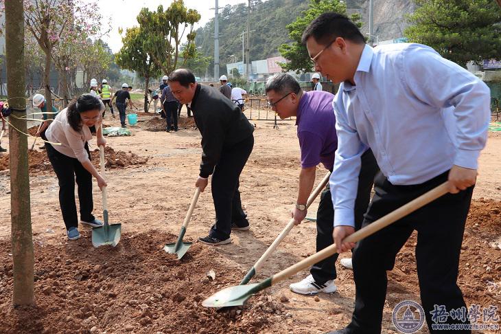 此次植树活动主要是在北校区食堂北侧种植梧州市市树六旺树和宫粉紫荆。对于在北校区开展的植树活动,师生热情高涨,有人扶着树干、有人培土、有人浇水,共同期待来年春天的绿树成荫、繁花似锦。