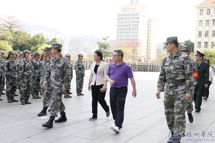 3月16日下午,梧州军分区司令员范江文到校检查指导我校2020级新生军训工作。梧州军分区副司令员左平生、动员处处长赵晓峰,校党委书记韦仕珍、校长杨奔、校党委副书记曹迎,万秀武装部部长曾庆文,学校党委(校长)办公室、武装部负责人参加有关活动。