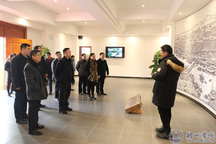 座谈会后,在校党委书记韦仕珍、校纪委书记梁业华陪同下,苗剑校长一行参观了校史馆,考察了大学生就业指导中心(邑谷梧院体验馆)、商学院创新创业教育中心,考察调研了梧州学院博物馆,进一步了解我校的创业就业工作情况和校园文化建设情况。