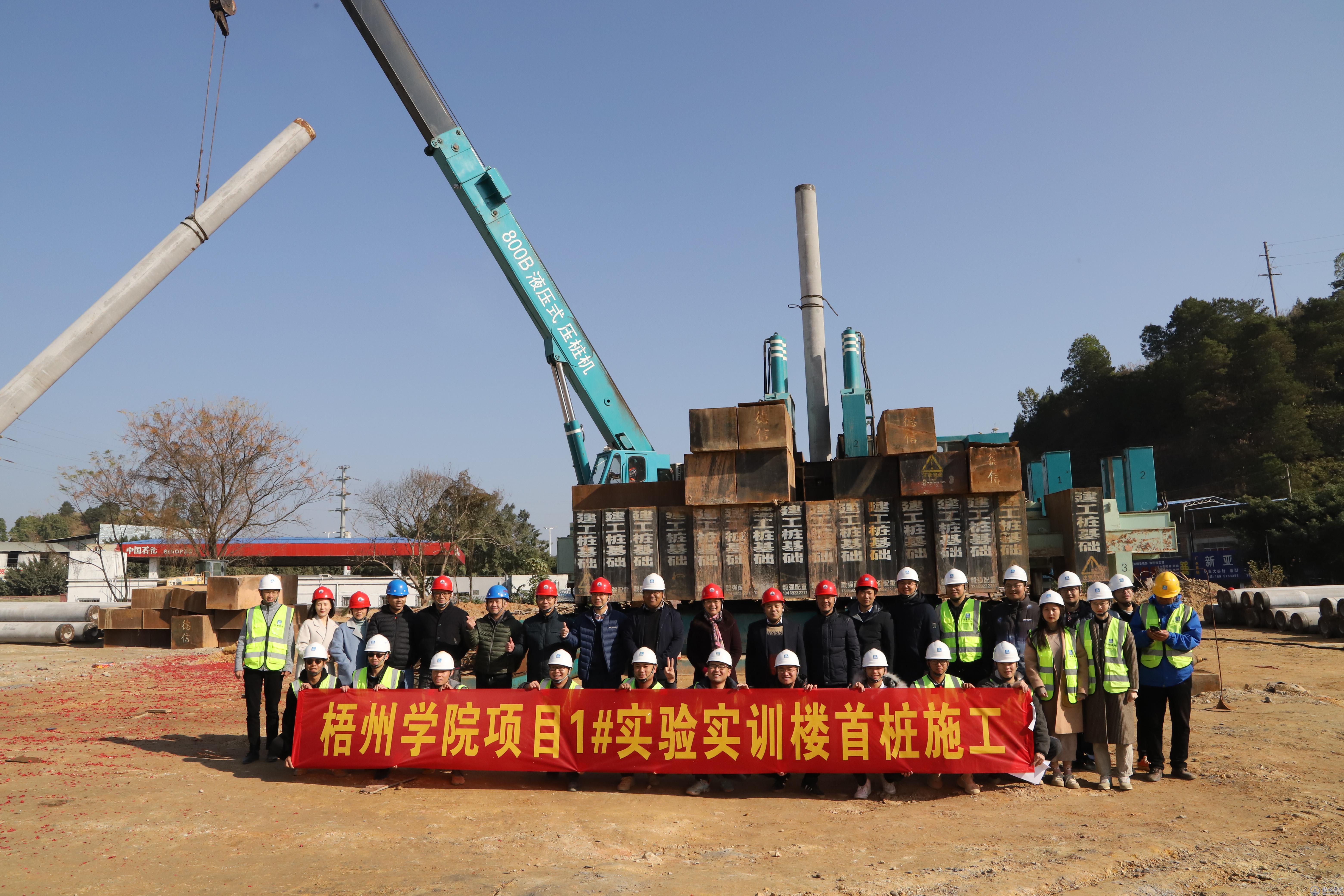 12月31日10点18分,在北校区二期、三期建设项目工地上,随着鞭炮声落,现场人员掌声响起,大型打桩机开始工作,打下北校区二期、三期建设项目第一桩,标志着继第一期工程8栋学生宿舍在10个月里建成并交付使用后,北校区建设又翻开新的篇章。学校党委书记韦仕珍,副校长玉振明,学校基建攻坚指挥部、后勤基建处、承建单位项目部人员一起见证了这一时刻。