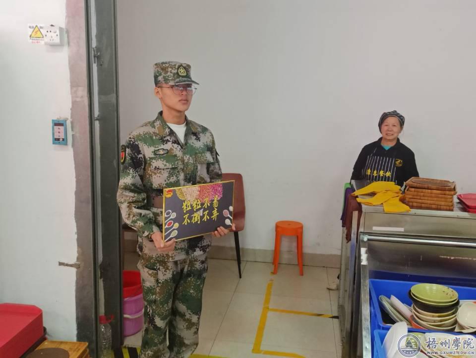 为了文明监督,规约浪费行为,学校抽调国旗护卫队在各个食堂设立了“文明就餐监督员”,负责劝阻用餐的浪费行为,帮助师生养成良好的用餐习惯。劝阻小组队员商学院2020级国际经济与贸易3班陈斌乐说:“学校举办光盘活动,是对餐桌文明的促进,作为文明就餐监督员,身着迷彩服对用餐的浪费行为进行劝导,能帮助同学们提高对光盘行动的意识。”据了解,国旗护卫队总共动员了18名队员,分成3个小分队分别在第一、第二、第三食堂进行监督劝导。