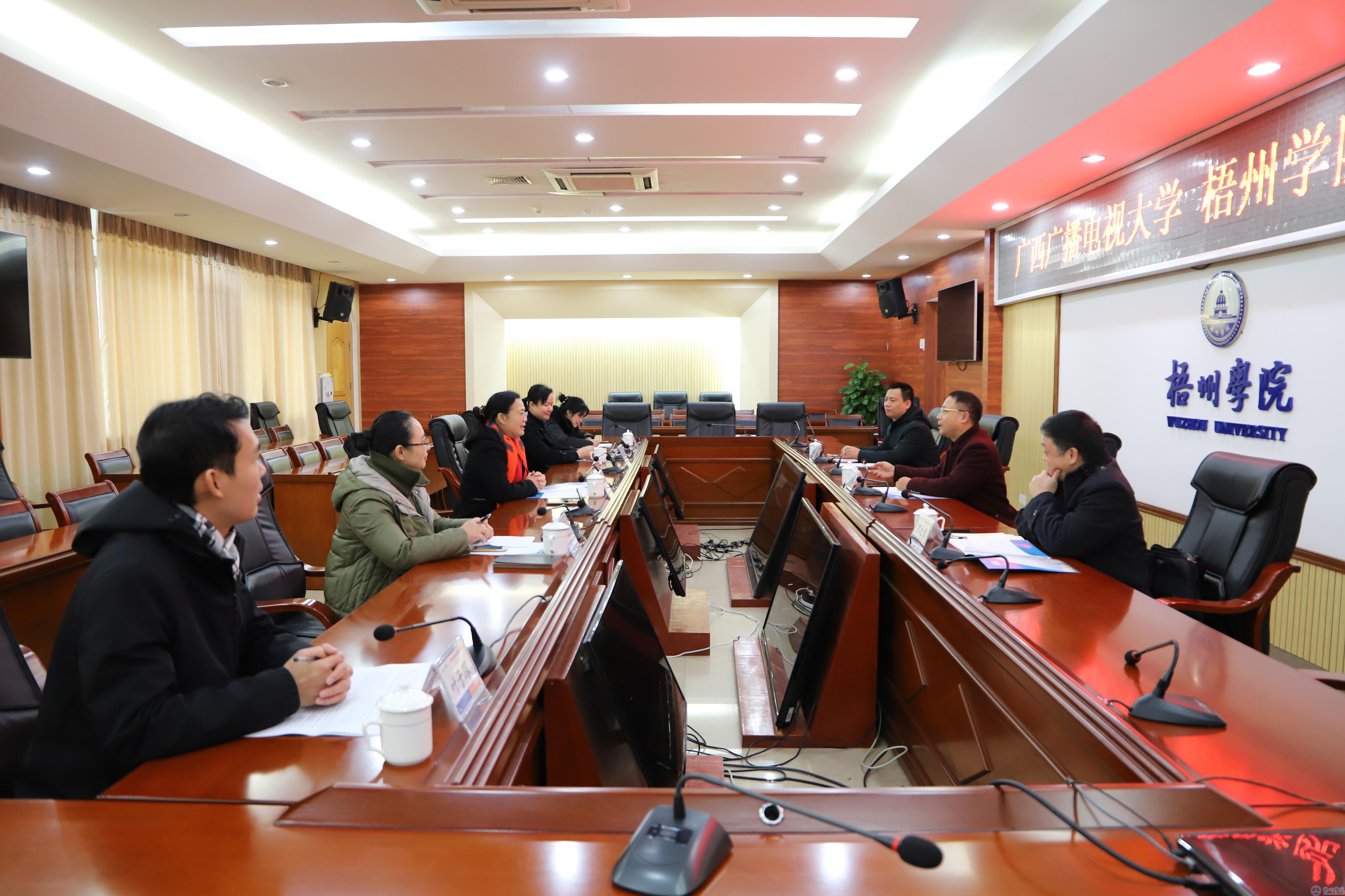 12月18日下午,广西广播电视大学党委书记周鸿、党委副书记罗之勇、财务处处长李国助到我校交流。校党委书记韦仕珍主持接待了周鸿一行。校党委副书记曹迎,校党委组织部、党委宣传部、财务处负责同志参加了有关活动。