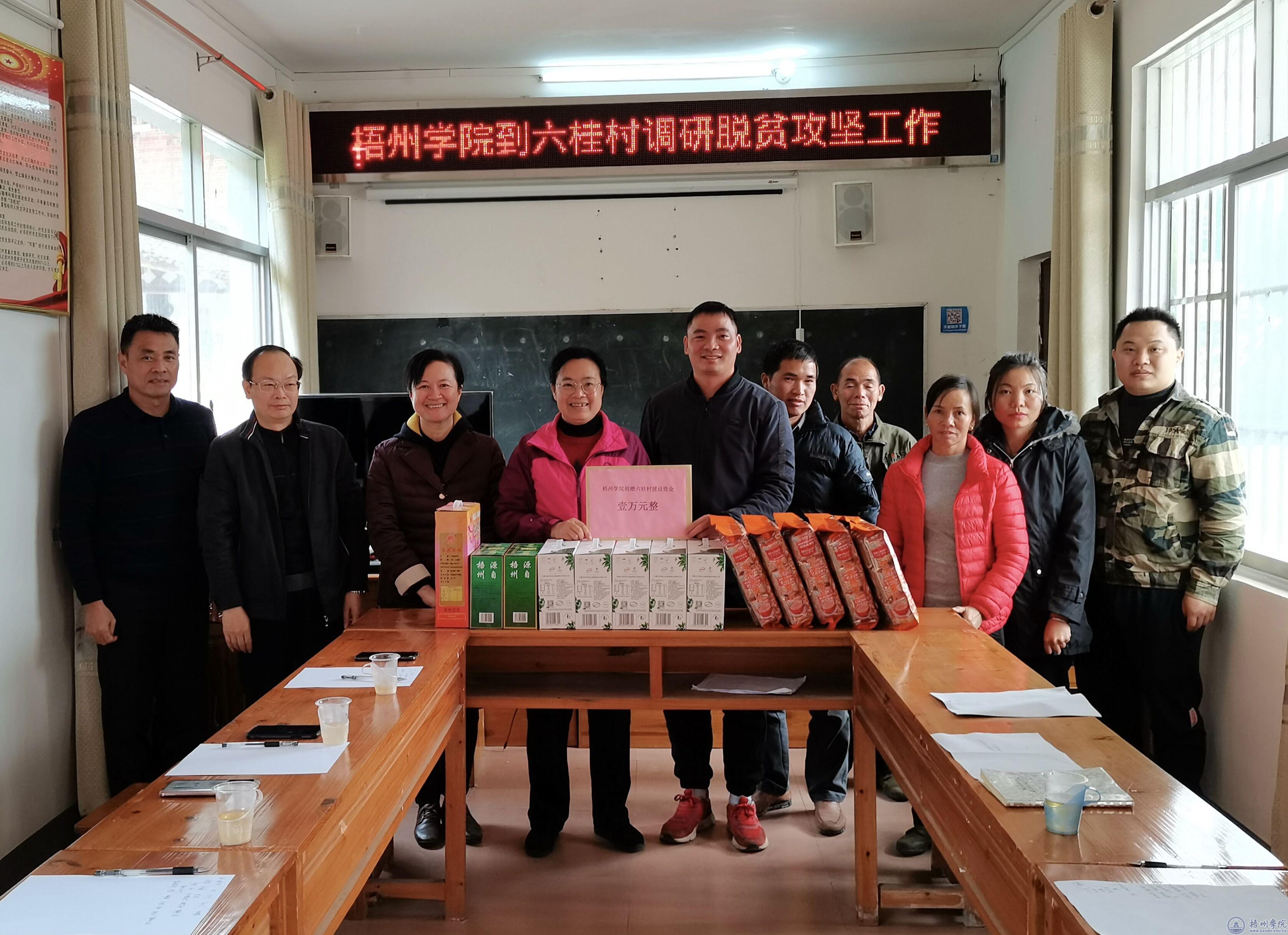 12月22日,学校党委书记韦仕珍,党委副书记曹迎,纪委书记梁业华,党委组织部部长黄健武一行四人到蒙山县新圩镇六桂村调研脱贫攻坚工作。