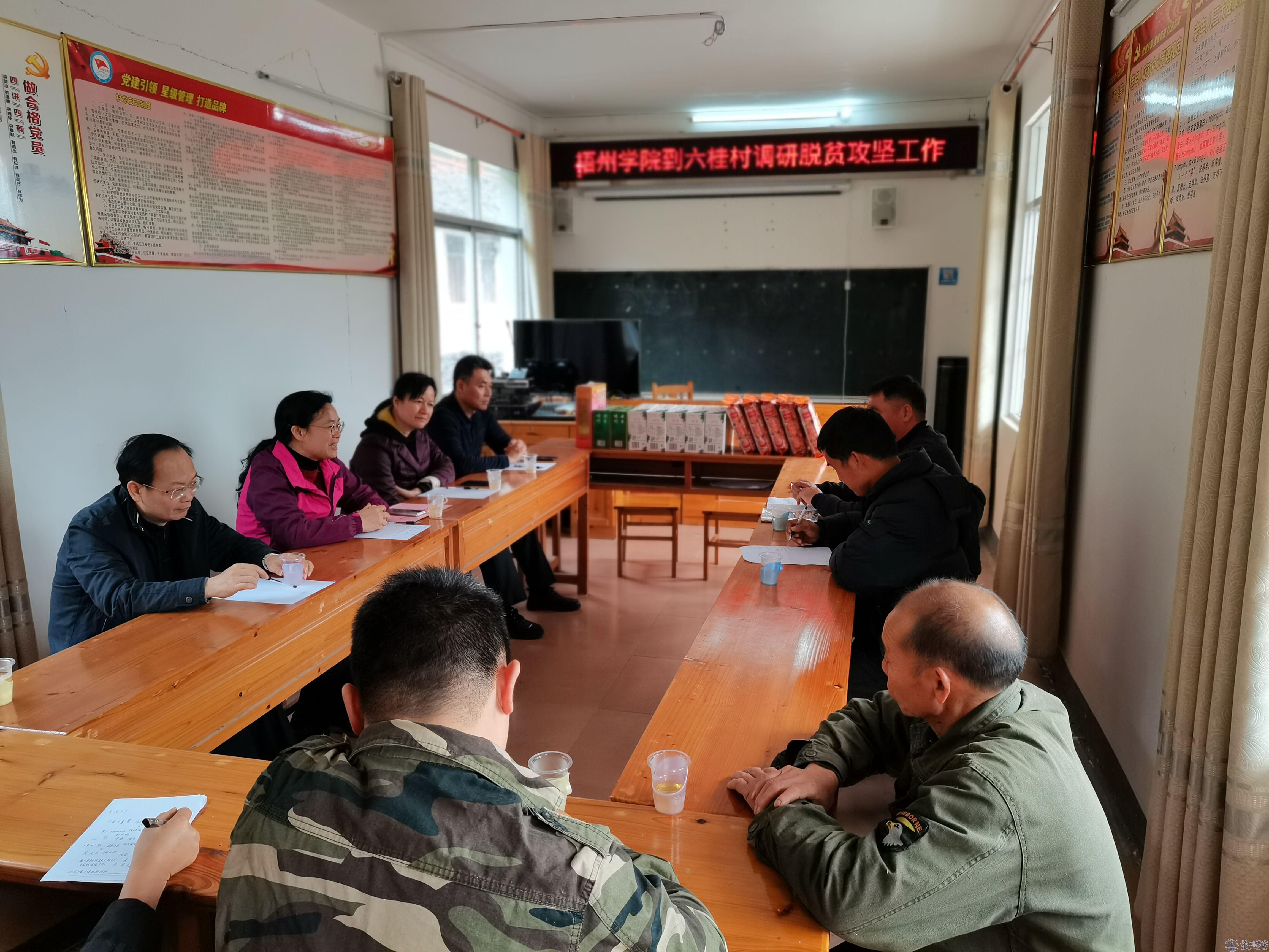 调研座谈会上,韦仕珍一行听取了我校派驻六桂村第一书记黄志锋的工作汇报,与村“两委”成员进行交流,进一步深入了解驻村第一书记的工作和生活情况。她对驻村第一书记工作开展取得的成效予以肯定,对六桂村给予驻村我校第一书记的关心支持表示感谢,希望第一书记能继续带领群众发展特色产业,壮大集体经济,完善乡村治理体系,加强乡风文明建设,以迎接决战决胜夺取脱贫攻坚战的全面胜利。
