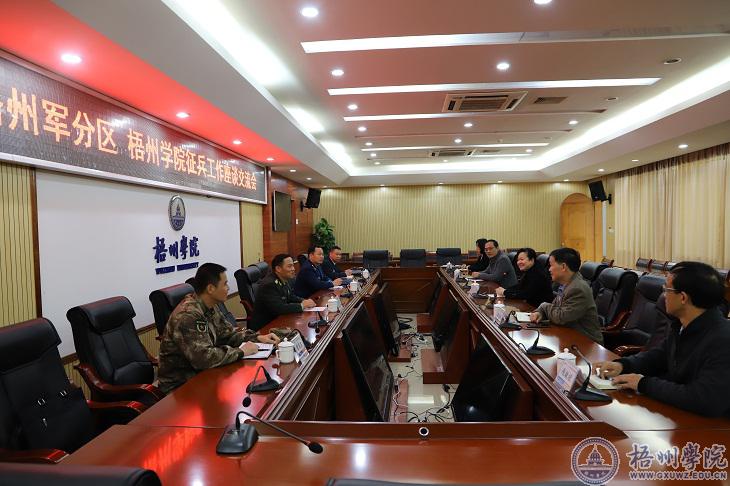 会上,曹迎从做好新形势下的征兵工作、与万秀区武装部加强合作、加强协调联动等方面汇报了我校2020年的征兵情况,她希望军分区对报名参军学生在手续办理上给予更大支持。双方围绕分工配合、征兵宣传、大学生入伍手续等方面进行了交流座谈。