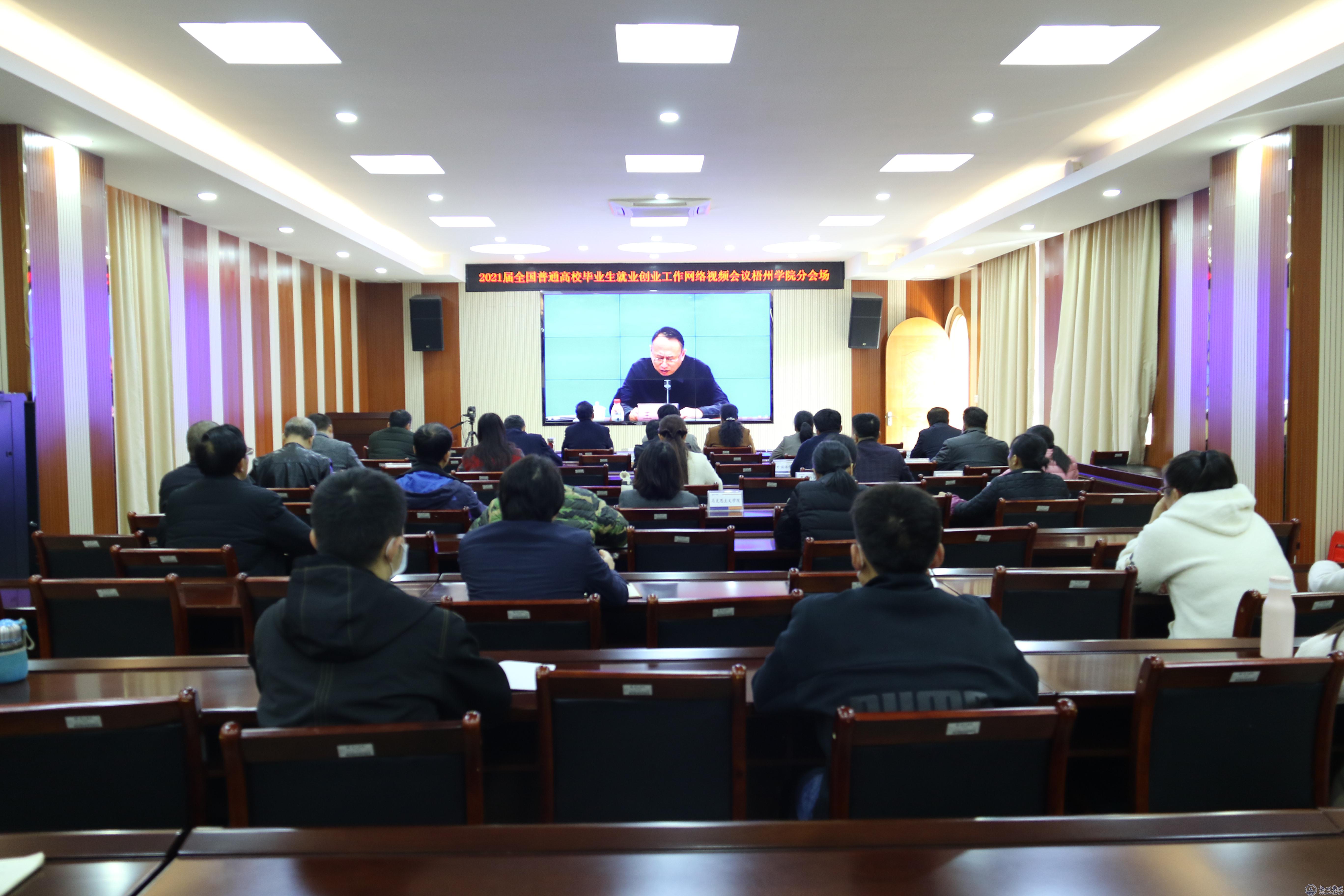 12月1日上午,教育部、人力资源社会保障部在北京召开2021届全国普通高校毕业生就业创业工作网络视频会议,深入学习贯彻党的十九届五中全会精神,部署做好2021届高校毕业生就业工作。学校党委书记韦仕珍,副校长麻新纯,学校党委办公室、校长办公室、党委组织部、党委宣传部、学生工作部(处)、武装部、教务处、校团委、创新创业教育学院相关人员、各二级学院主要负责人、分管学生工作副书记及全体2021届毕业班辅导员参加了视频会议。