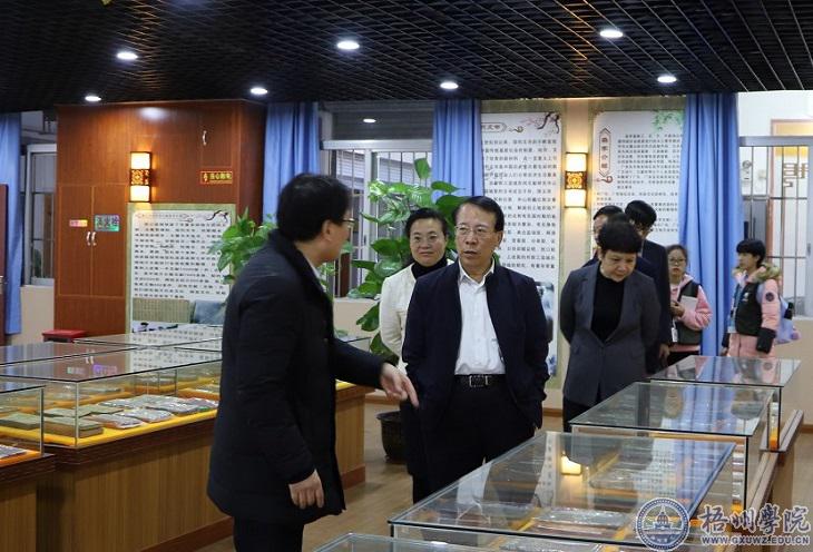 讲座结束后,在校党委书记韦仕珍的陪同下,邬大光教授一行参观了西江商贸文化博物馆、宝石文化博物馆、西江流域民间文献研究中心,并听取了有关工作人员的介绍。邬大光建议,结合梧州是广西高等教育的发源地这一亮点,建设西江商贸教育博物馆,让“商业味”与“文化味”并存。