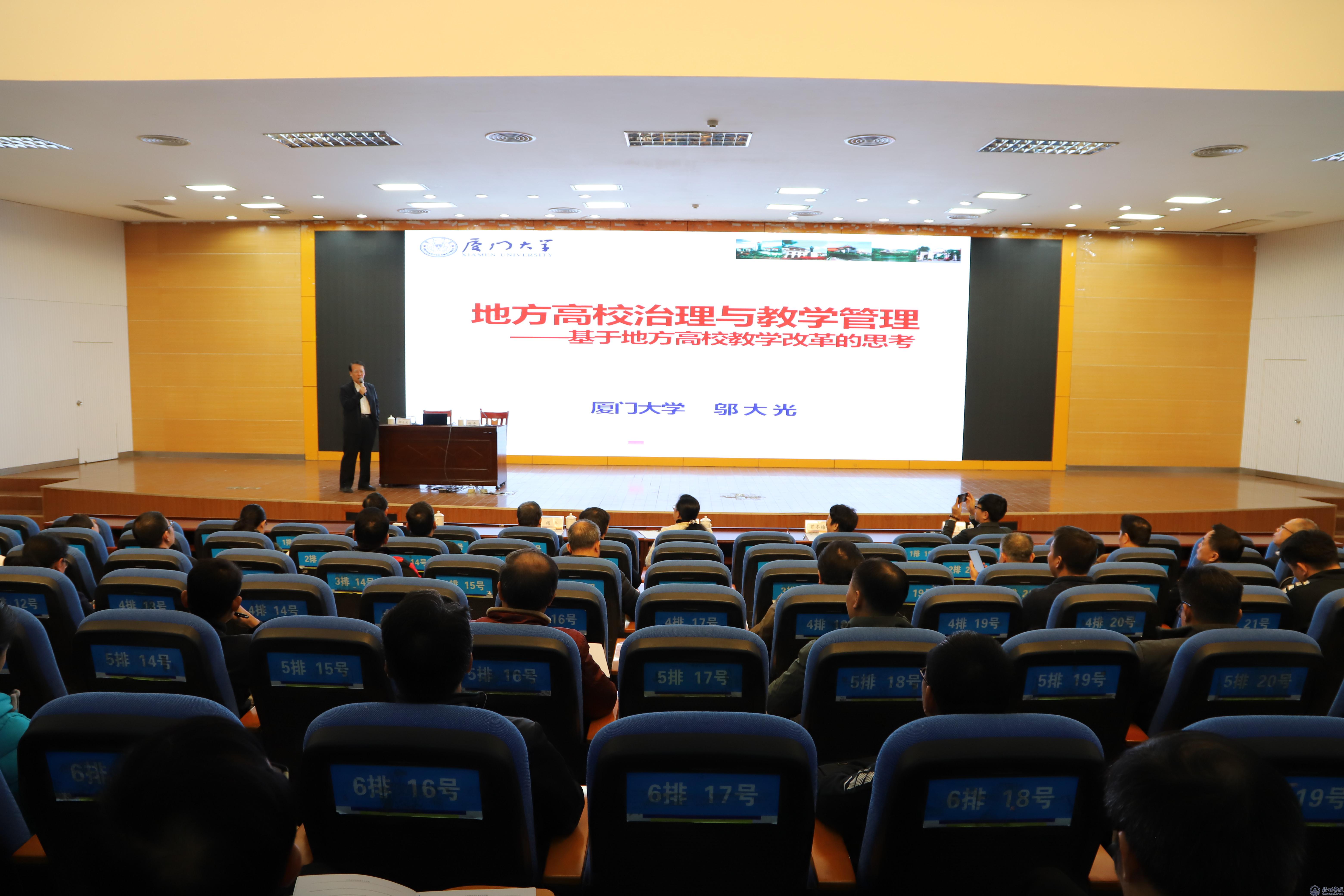 12月3日下午,厦门大学原副校长、教授、博士生导师邬大光,广西大学行健文理学院院长曾冬梅一行到我校开展学术交流活动。邬大光教授在明理楼学术报告厅作题为《地方高校治理与教学管理——基于地方高校教学改革的思考》的讲座。学校领导韦仕珍、杨奔、麻新纯,全体中层干部、机关科级以上干部、教研室主任、各二级学院党政办公室副主任聆听了讲座。专题讲座由杨奔校长主持。