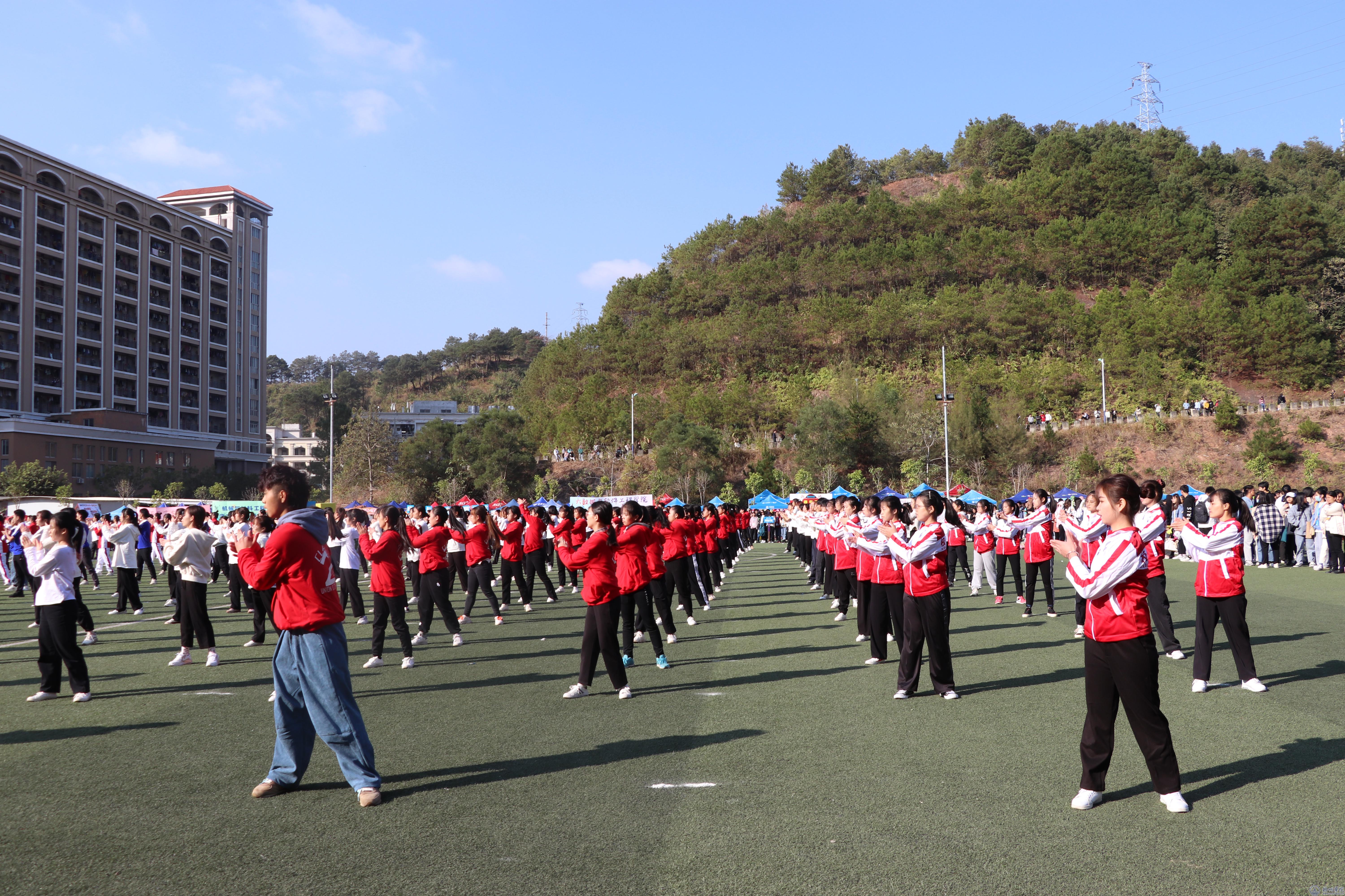 12月3日上午,学校第31届校运会开幕式在北校区田径场举行。本届校运会的一大亮点,就是开幕式结束后的广播体操团体赛。