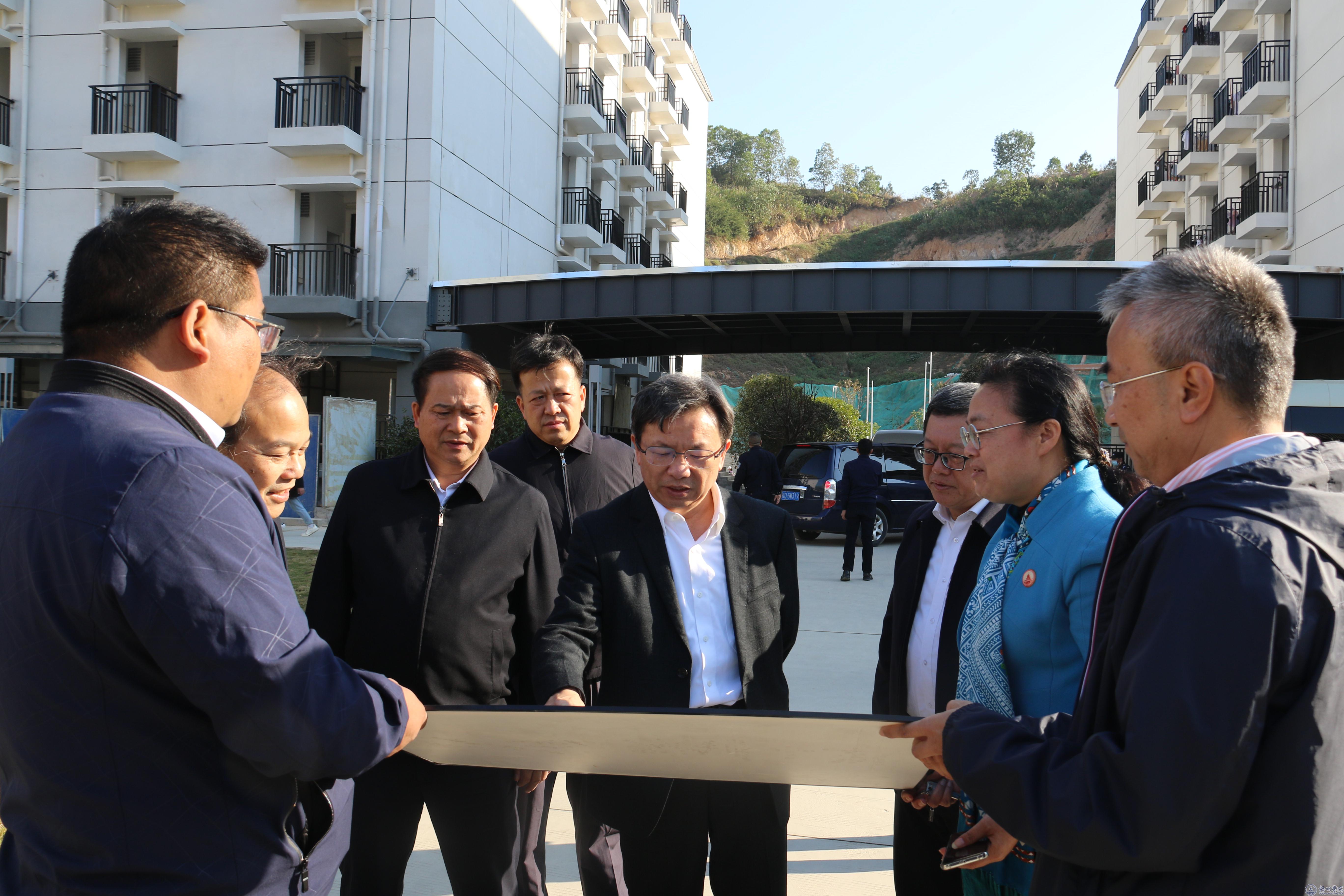 卢献匾副主任在北校区学生宿舍中庭观看北校区项目效果图