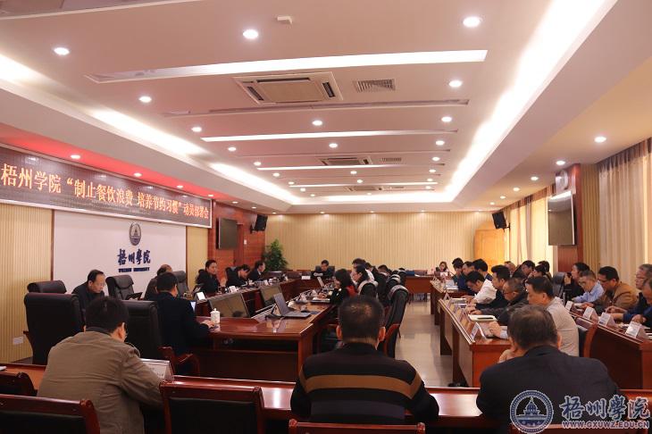 校党委书记韦仕珍就有关工作提出要求:各单位、各部门要提高思想认识,履行社会责任,以实际行动弘扬勤俭节约良好美德;要加强组织领导,突出关键环节,各单位、各部门要明确工作责任,确保工作落实;要切实提高师生的节约意识,加强宣传引导,引领良好风尚;要制定相应的督导方案和问责办法,强化督导检查、监督执纪问责及警示教育。她号召全体师生团结一致,行动起来,以身作则、率先垂范,做制止餐饮浪费的宣传者、践行者,充分展示梧院师生健康文明、积极向上的美好形象。