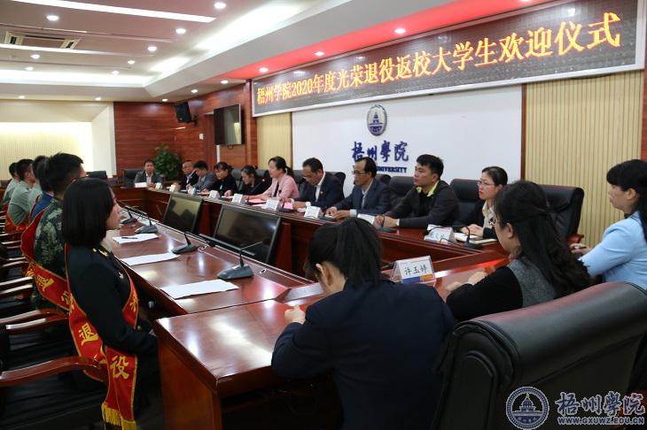 11月13号下午,学校在明理楼八楼第一会议室举行2020年度光荣退役返校大学生欢迎仪式。学校党委副书记曹迎出席仪式,2020年退役复学的全体同学,校征兵工作站相关领导,退役大学生所在二级学院学生工作副书记、辅导员、班主任及同学代表参加了仪式。