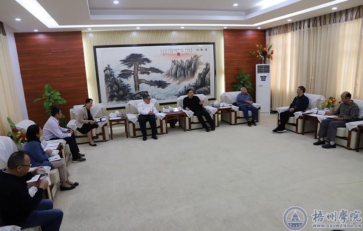 10月29日下午,梧州市政协主席黄振饶到我校开展统战理论研究工作调研。校长杨奔,校党委副书记曹迎,全国十二届政协委员李小满,梧州市政协原副主席、梧州市中华文化促进会主席陈澄波出席调研座谈会。校党委统战部、马克思主义学院负责人参加会议。