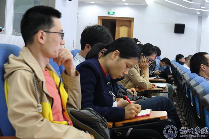 11月4日下午,我校在明理楼学术报告厅举办梧院大讲坛活动,校党委书记韦仕珍作《深入学习贯彻习近平总书记关于教育的重要论述》专题报告。学校领导曹迎、玉振明、梁业华、麻新纯,全体中层干部,各二级学院教师参加了报告会。报告会由校党委副书记曹迎主持。